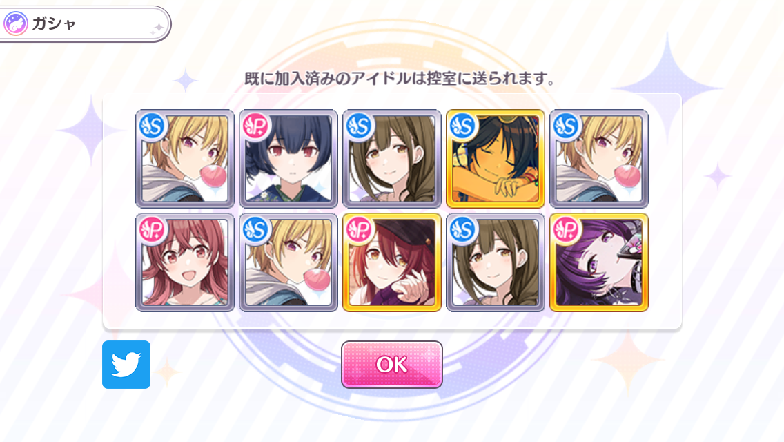 | [샤니마스] 19.04.07 1주년 무료 가챠 (0) | 2019.04.07 |
